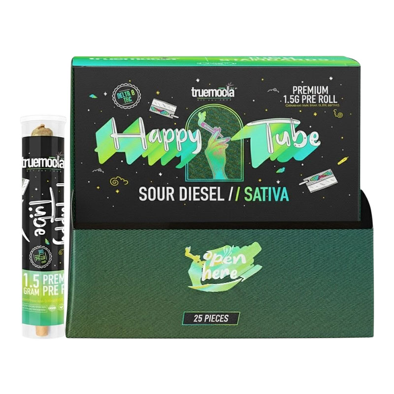 TRUEMOOLA HAPPY TUBE D8 SOUR DIESEL SATIVA 1.5G - BOX OF 25